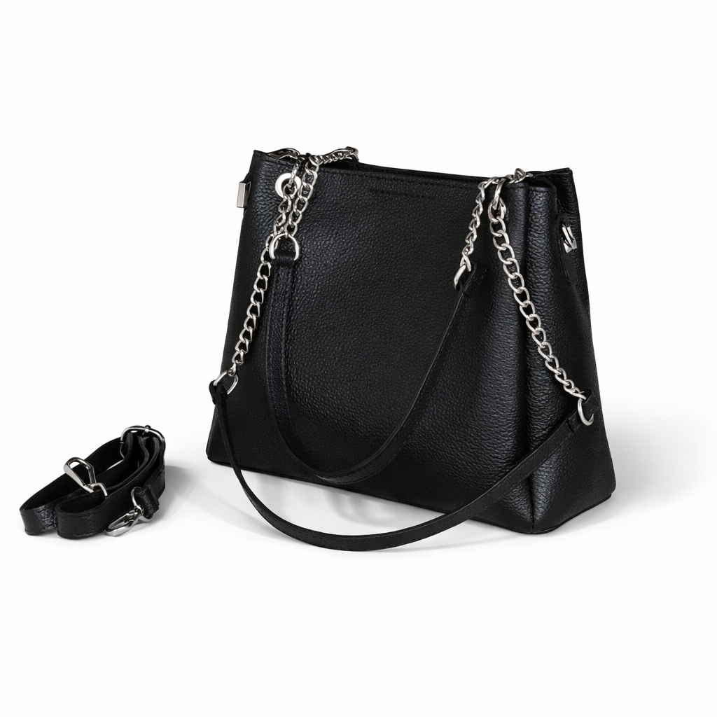 The perfect bag for those who love style and practicality, spacious with three compartments, including a central zip compartment. The ideal companion for your daily adventures, the two chain handles add a touch of elegance, the high-quality leather ensures durability and comfort, while the adjustable internal shoulder strap allows you to carry it as you prefer, either over the shoulder or by hand.