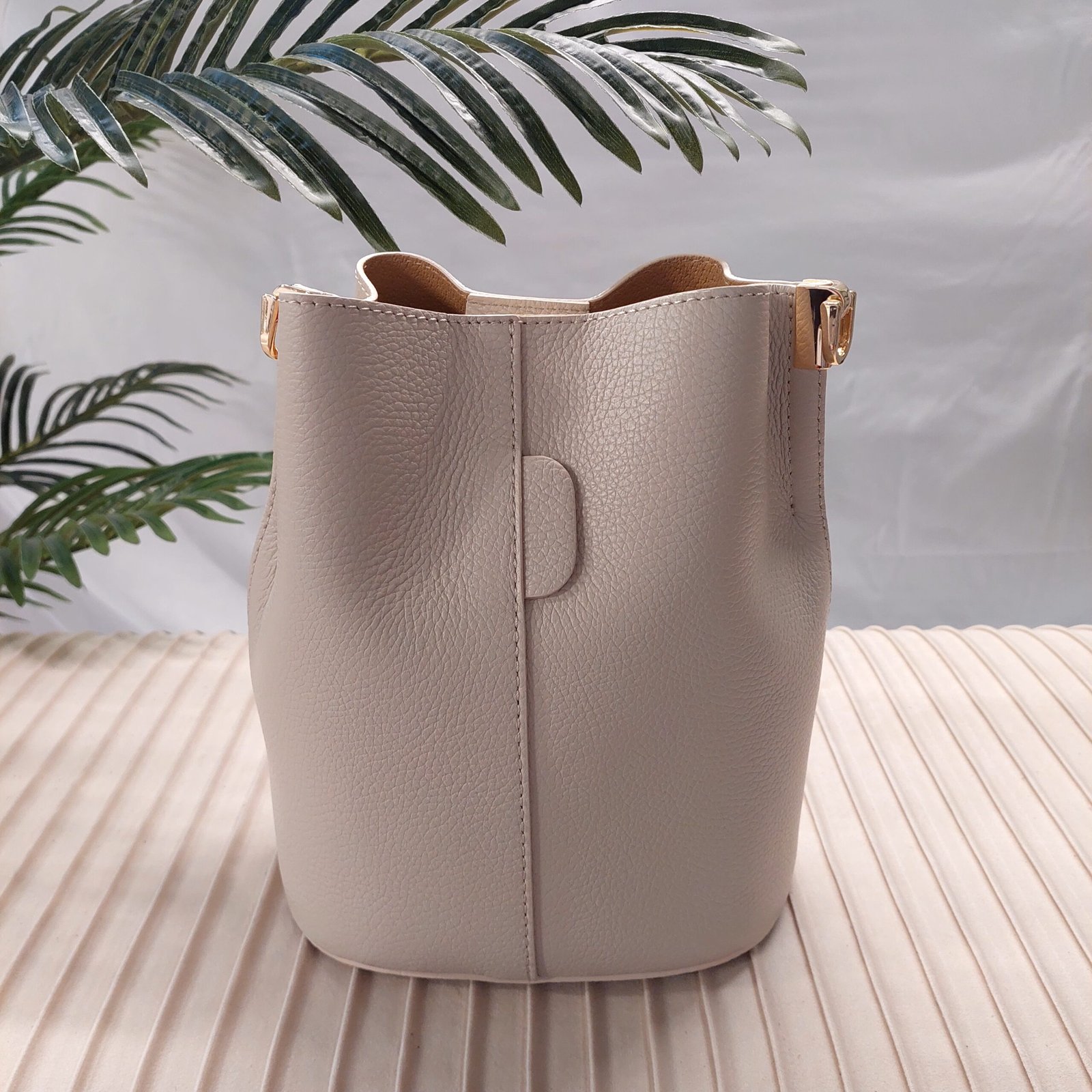 Borsa a secchiello accessorio di tendenza, progettata con tre scomparti pratici per organizzare al meglio i tuoi oggetti. Lo scomparto centrale, piΓΉ piccolo, Γ¨ dotato di una chiusura a zip per garantire la sicurezza dei tuoi effetti personali. Inoltre, questa borsa offre due tracolle: una in pelle regolabile, per un comfort personalizzato, e l’altra in catena dorata, perfetta per un tocco di eleganza. Chiusura con clip centrale.