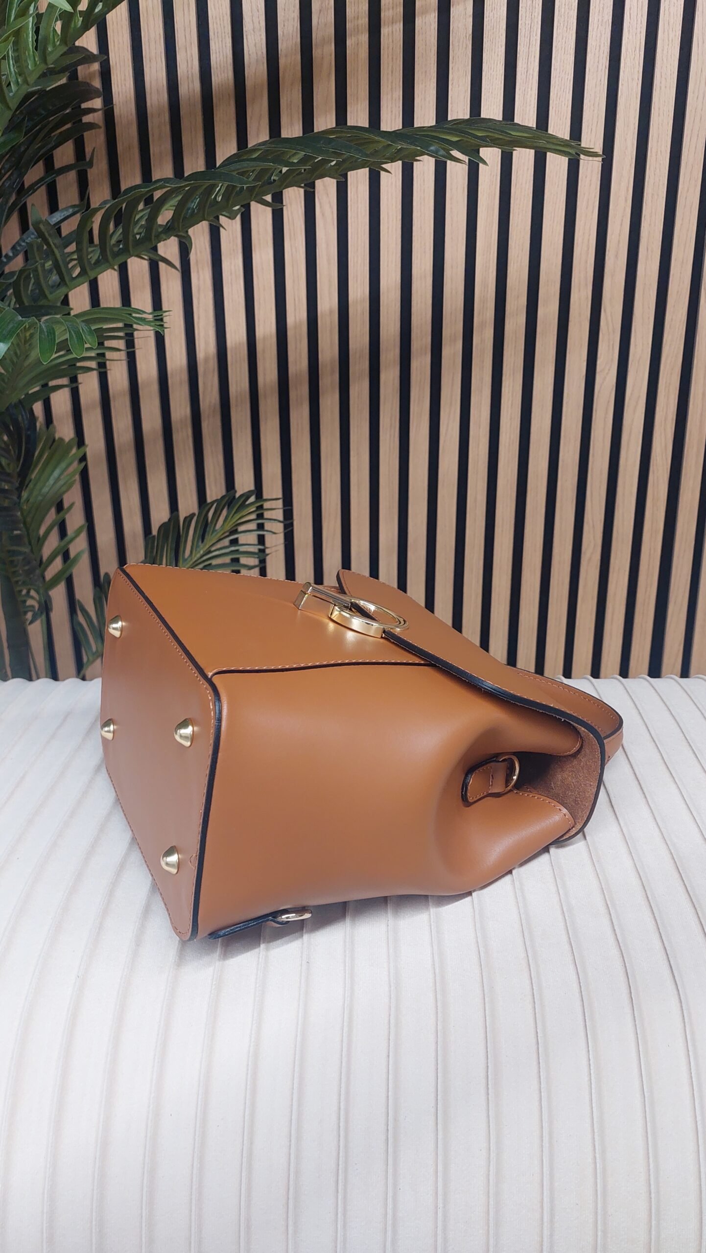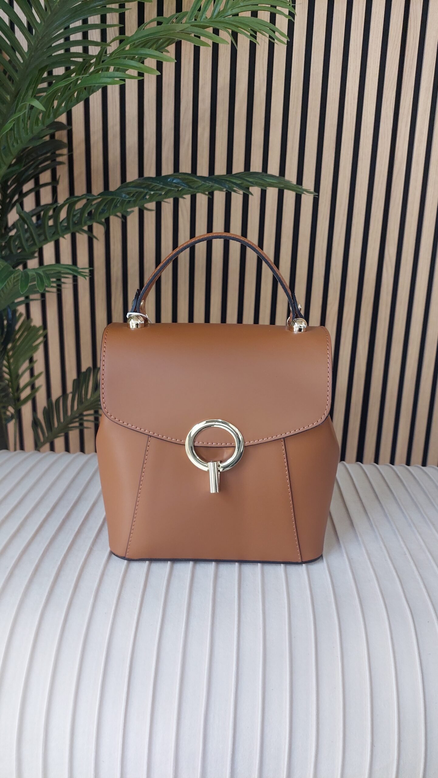 Smooth leather backpack, perfect for those who love style without sacrificing functionality! This backpack features a super convenient front opening and an elegant gold-tone accessory that adds that extra touch. Inside, you’ll find a spacious compartment, ideal for storing everything you need for your day. And let’s not forget the adjustable shoulder straps: you can customize the length for optimal comfort! Perfect for outings around town or for work.
