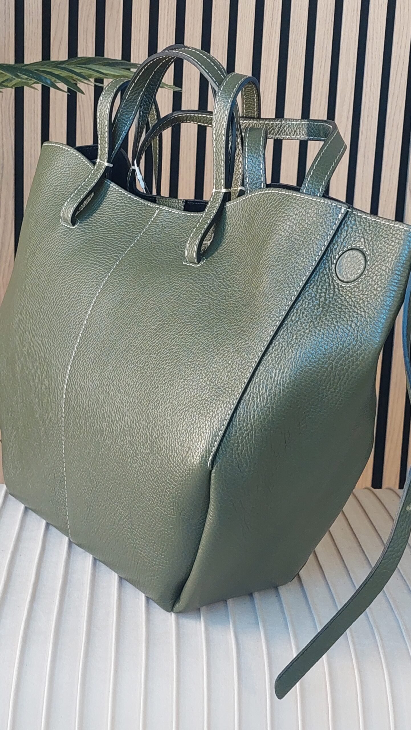 Borsa in pelle molto grande! Con un unico scomparto spazioso,ย questa borsa รจ perfetta per chi ama organizzare il proprio mondo con stile.ย La sacca interna offre un tocco di praticitร , ideale per riporre gli oggetti piรน piccoli e tenerli sempre a portata di mano.ย I quattro manici, robusti e affascinanti, permettono diverse modalitร di trasporto,ย rendendola versatile per ogni occasione. Che si tratti di una giornata in ufficio o di una passeggiata nel parco,ย questa borsa รจ lโaccessorio perfetto per esprimere la tua personalitร unica! Chiusura centrale a clip