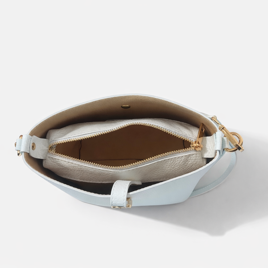 Allโ€™interno, la borsa presenta uno scomparto principale con pochette interna con zip, perfetta per organizzare al meglio gli oggetti essenziali come smartphone, portafoglio e chiavi.