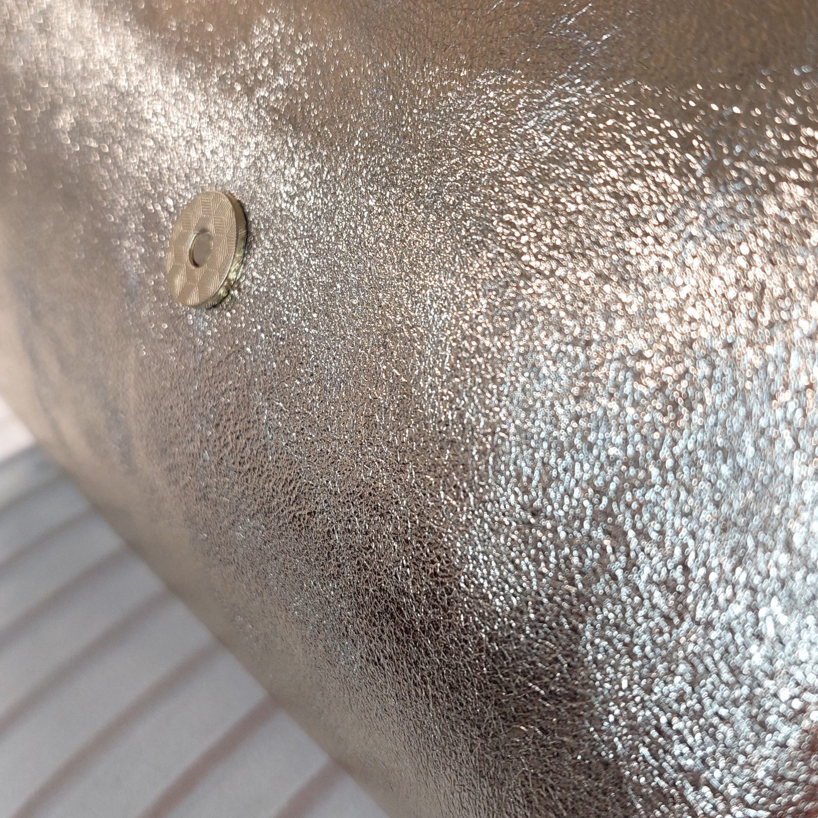 Elegante pochette a mano effetto laminato, un accessorio indispensabile per ogni donna raffinata. Caratterizzata da un unico scomparto, offre un’ottima capienza mantenendo un design pulito e sofisticato. La doppia chiusura, con cerniera e clip sul davanti, garantisce sicurezza e praticitร , tracolla regolabile all’interno